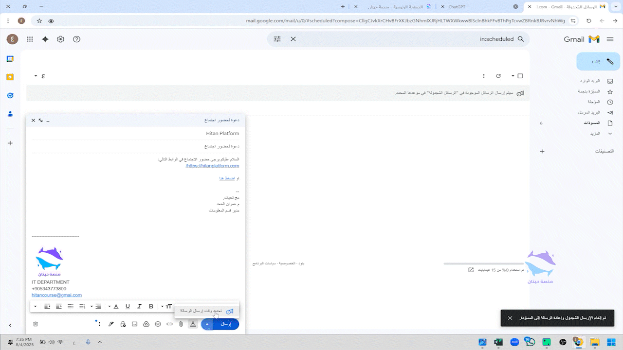 كتابة رسائل رسمية، إنشاء توقيع جذاب، الردود التلقائية، الجدولة، وتنظيم صندوق الوارد…