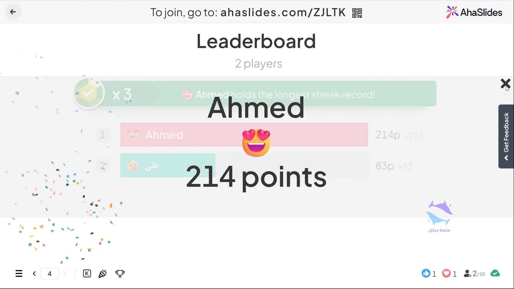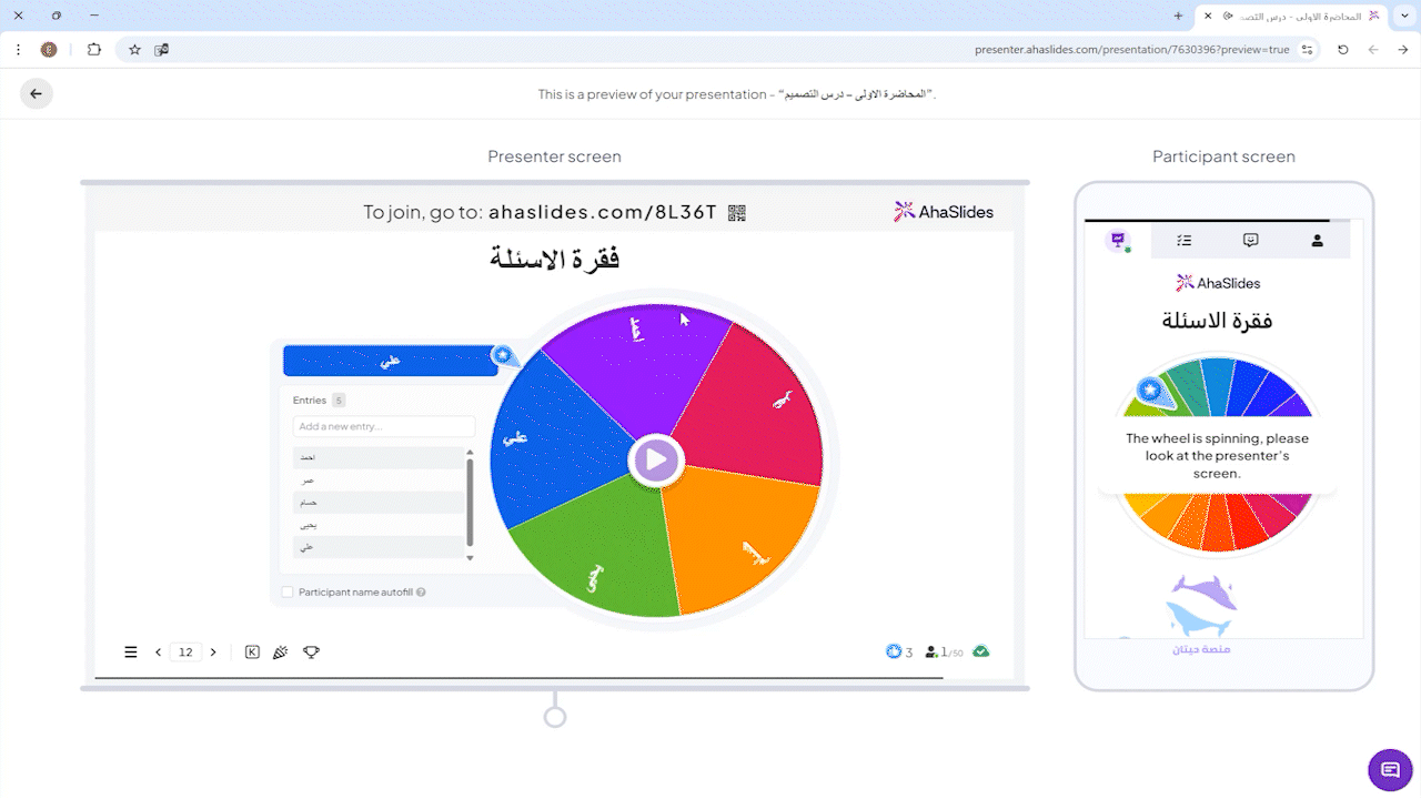 استخدام منصة AhaSlides لعمل مسابقات، اختبارات حية، عروض جاذبة، وتحليل التفاعل.