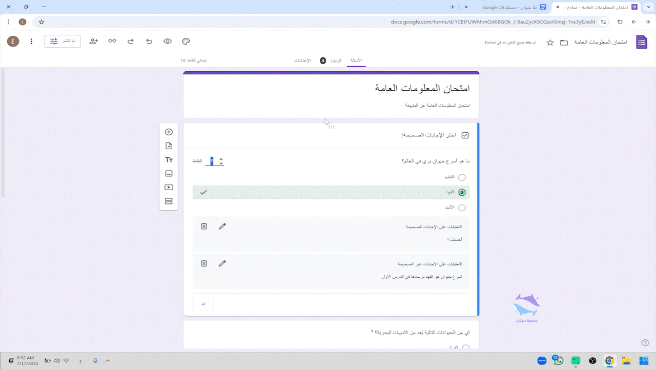عمل نماذج للواجبات، اختبارات كاملة، إضافة صور وفيديو، تحليل الردود…