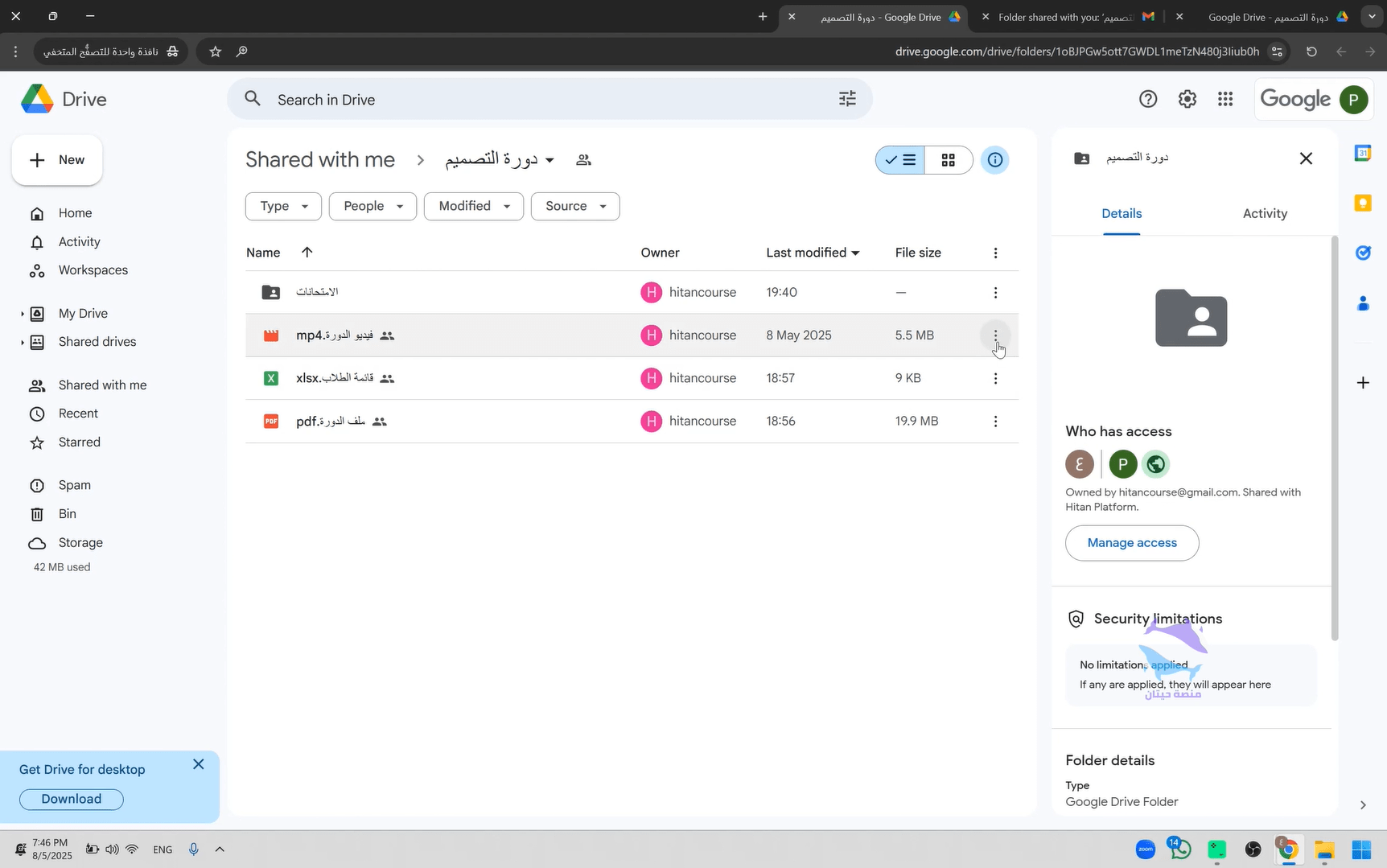 استخدام Google Drive، رفع الملفات، تنظيم المجلدات، ومشاركتها بطريقة آمنة وسريعة.